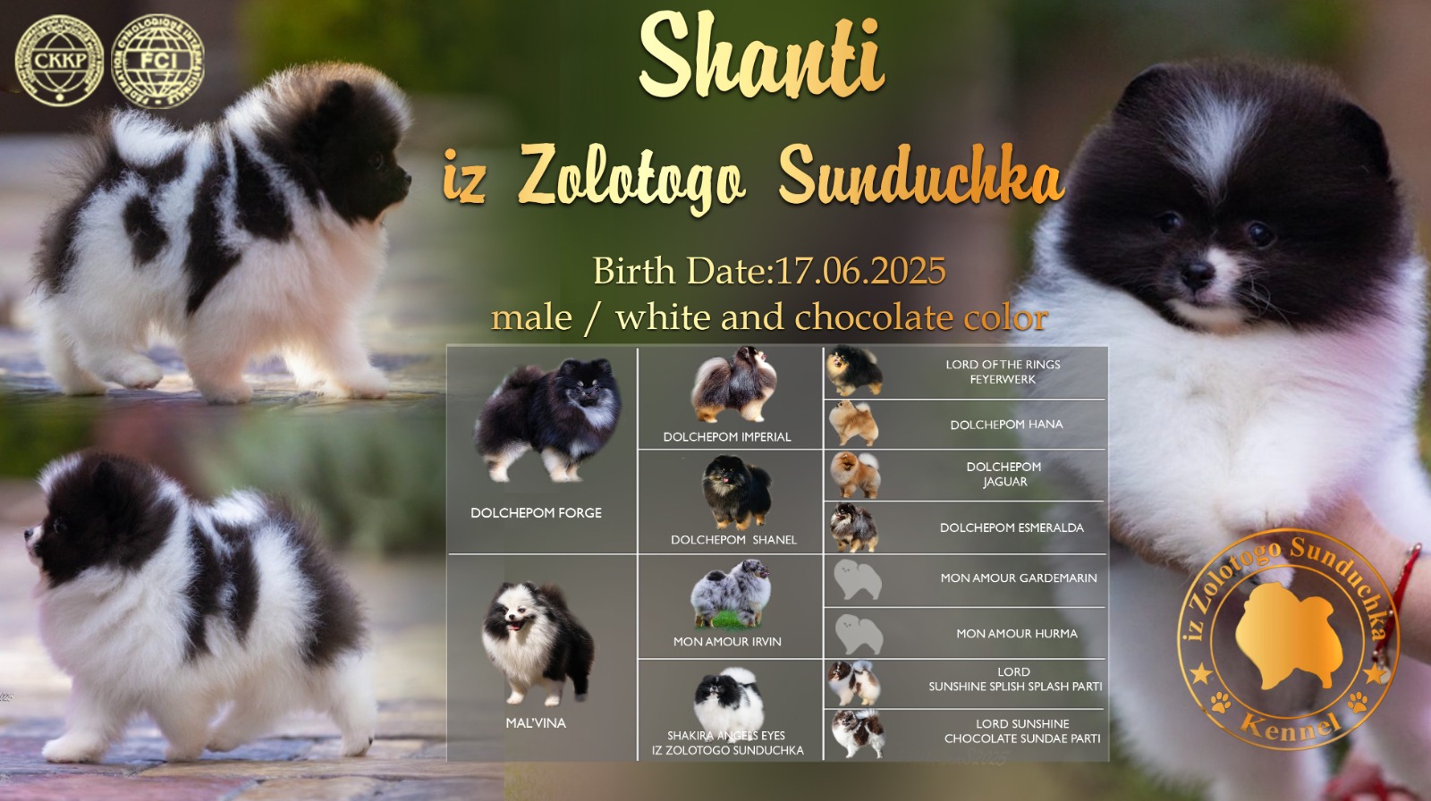 male 1- Shanti iz Zolotogo Sunduchka (white and chocolate color)