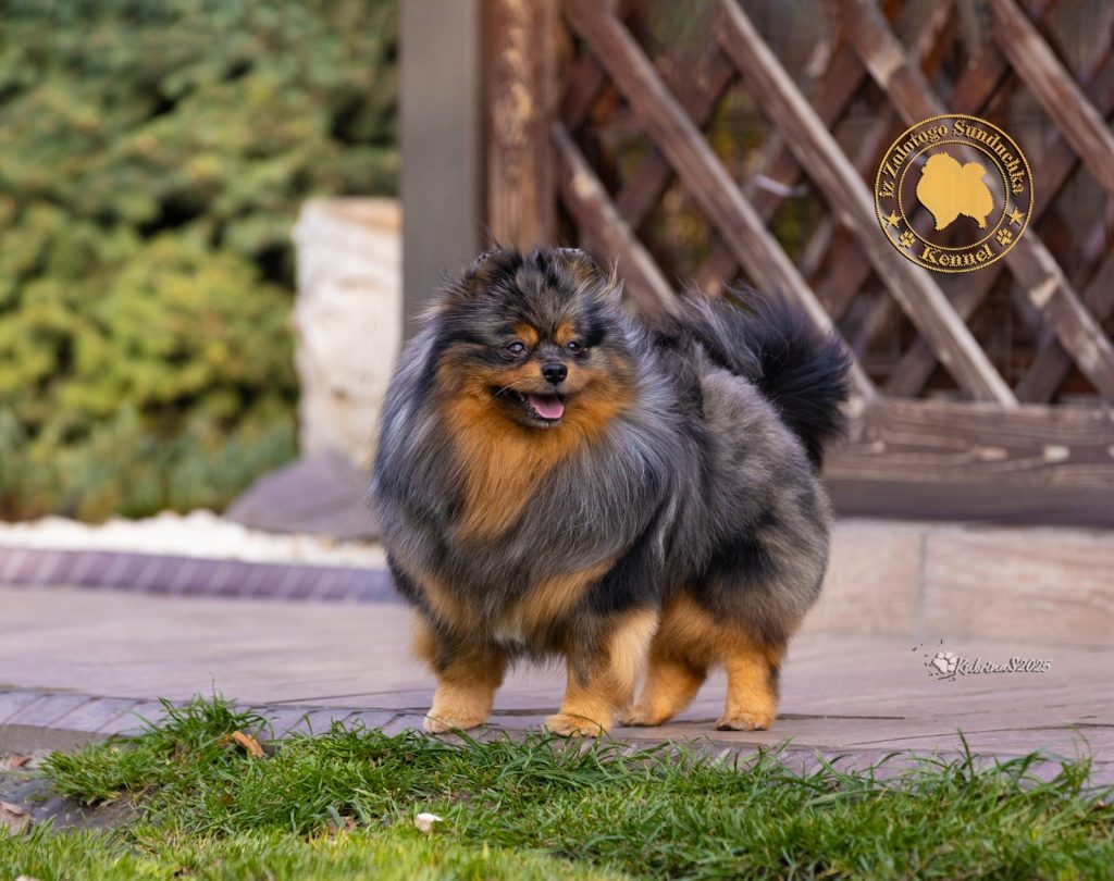 | Импорт: Россия Разновидность: Цвергшпиц / Померанский шпиц Дата рождения: 01.11.2021 Пол: сука Окрас: мерле Рост: | Import: Russia Type: Zwergspitz / Pomeranian Birth Date: 01.11.2021 Sex:Female Color: Merle & Tan Height: |