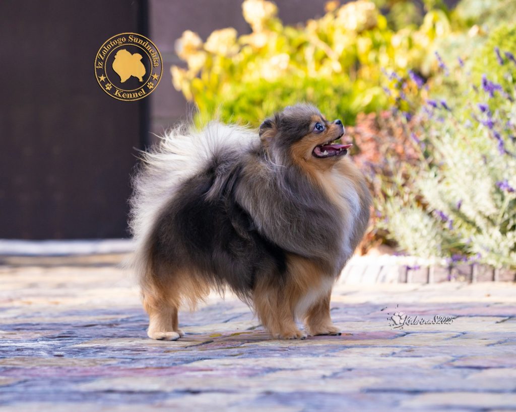| Импорт: Россия Разновидность: Цвергшпиц / Померанский шпиц Дата рождения: 08.09.2021 Пол: сука Окрас: мерле Рост: | Import: Russia Type: Zwergspitz / Pomeranian Birth Date: 08.09.2021 Sex:Female Color: Merle & Tan Height: |
